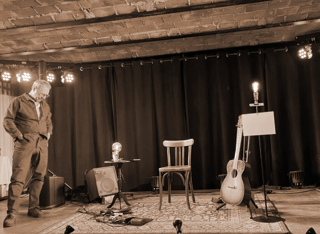 Une agréable déambulation parmi des croquis tracés avec des mots, et des couleurs posées par la guitare et la voix.